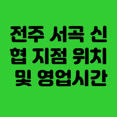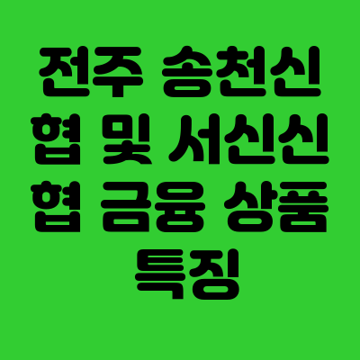 - 전주 서곡 신협을 비롯한 전주 지역 신협은 지점별 특화 상품과 높은 예금 금리를 제공합니다.